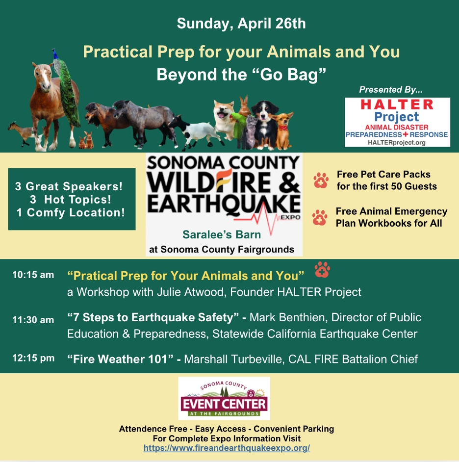 HALTER Project Founder Julie Atwood will guide you through the steps to a strong plan for animals in personal emergencies and natural disasters.